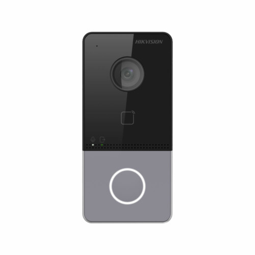 HIKVISION IP video door entry station. Standard POE. 2 megapixel HD camera. Two-way audio. Noise suppression and noise cancellation. Low lighting. Access control functions. Tampering alarm. Remote configuration via web. 2.4GHz WiFi. IK08 protection
