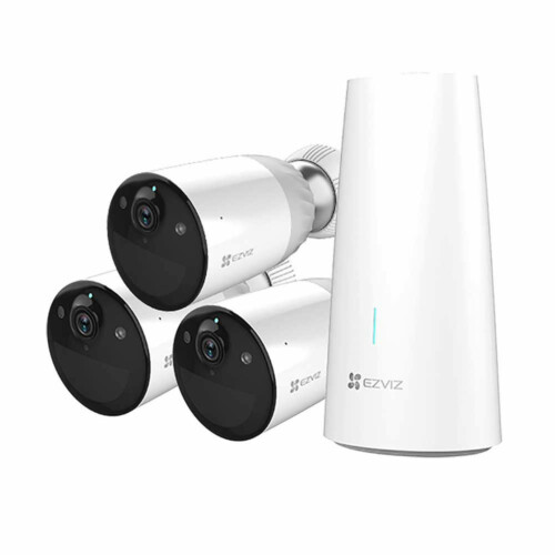 Kit of three EZVIZ 2MP outdoor WiFi IP cameras + base station. Color night vision. H.265 format. 2MP 1 / 2.8 "CMOS. 1080P @ 25 / 30IPS digital resolution. 2.8mm (108 ?) optical. Digital WDR, 3D-DNR. PIR motion detection. Active defense. Customizable voice alerts. Two-way audio. Includes base station compatible with MicroSD cards up to 256GB. IP66 protection. 12900 mAh rechargeable lithium battery