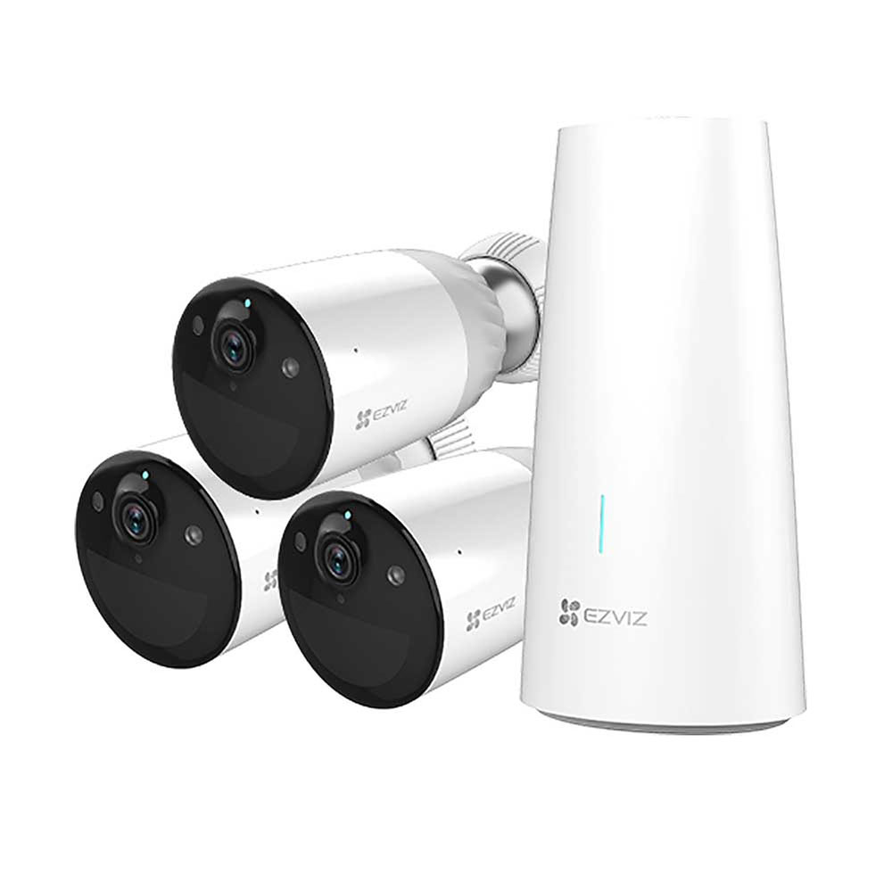 Kit of three EZVIZ 2MP outdoor WiFi IP cameras + base station. Color night vision. H.265 format. 2MP 1 / 2.8 “CMOS. 1080P @ 25 / 30IPS digital resolution. 2.8mm (108 ?) optical. Digital WDR, 3D-DNR. PIR motion detection. Active defense. Customizable voice alerts. Two-way audio. Includes base station compatible with MicroSD cards up to 256GB. IP66 protection. 12900 mAh rechargeable lithium battery